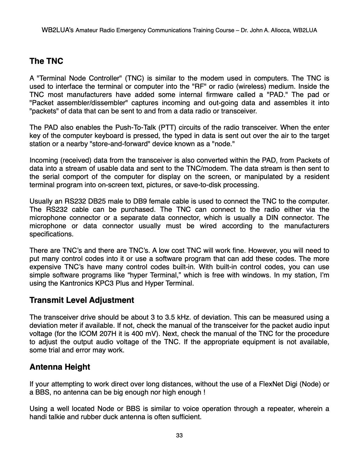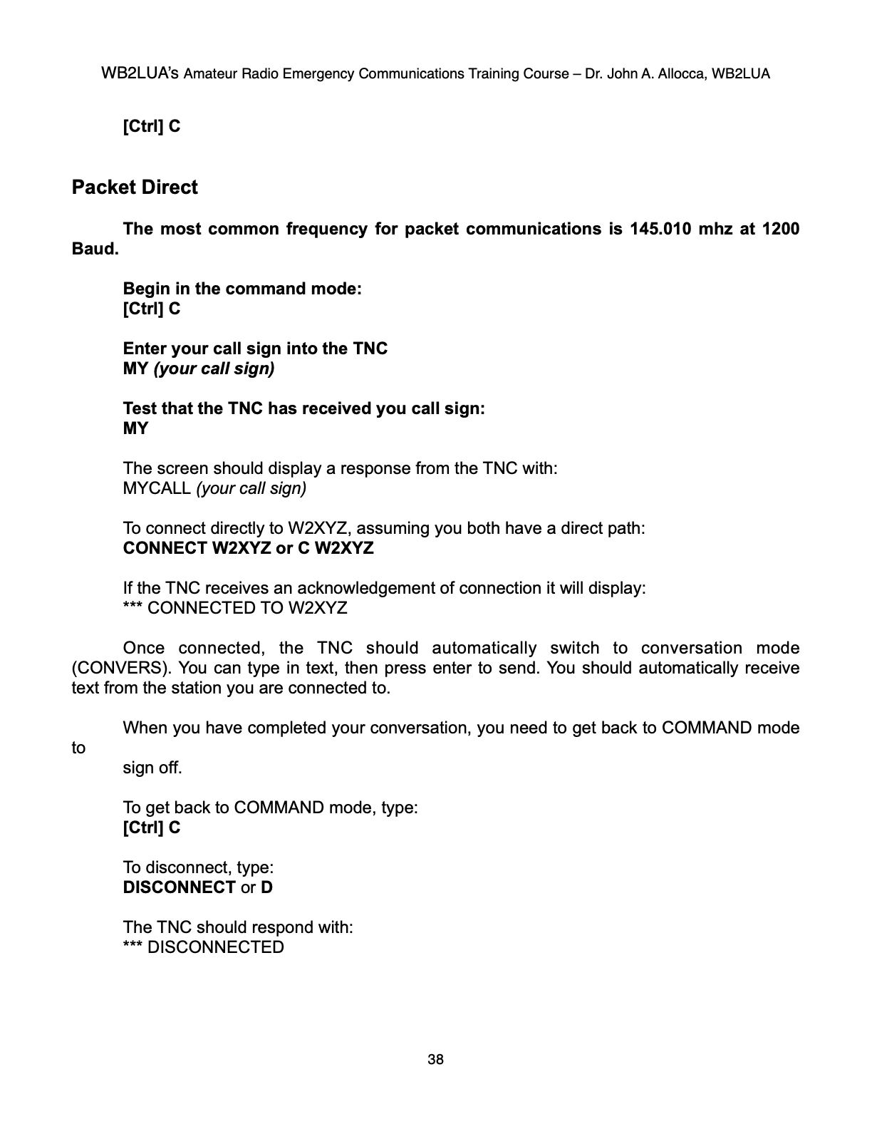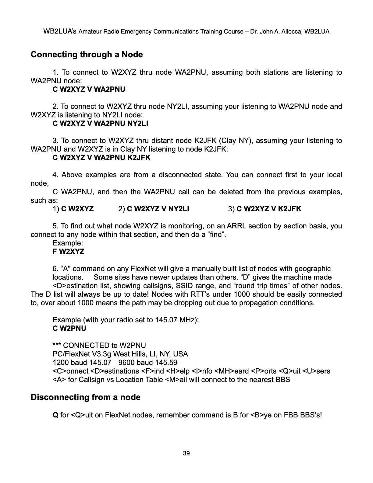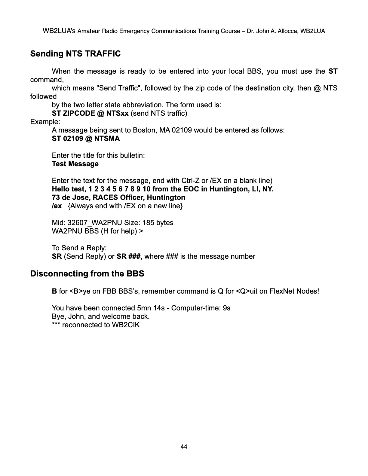 WB2LUA's Amateur Radio Emergency Communications Training Course Packet Radio Dr. John A. Allocca Allocca Biotechnology, LLC 202 East Main Street, Huntington, NY 11743 (631) 757-3919 drallocca@icloud.com www.allocca.com Copyright 2025 - All Rights Reserved SCROLL DOWN TO VIEW NEXT SLIDE Please Do Not Copy Click Here to Return to Main Menu |