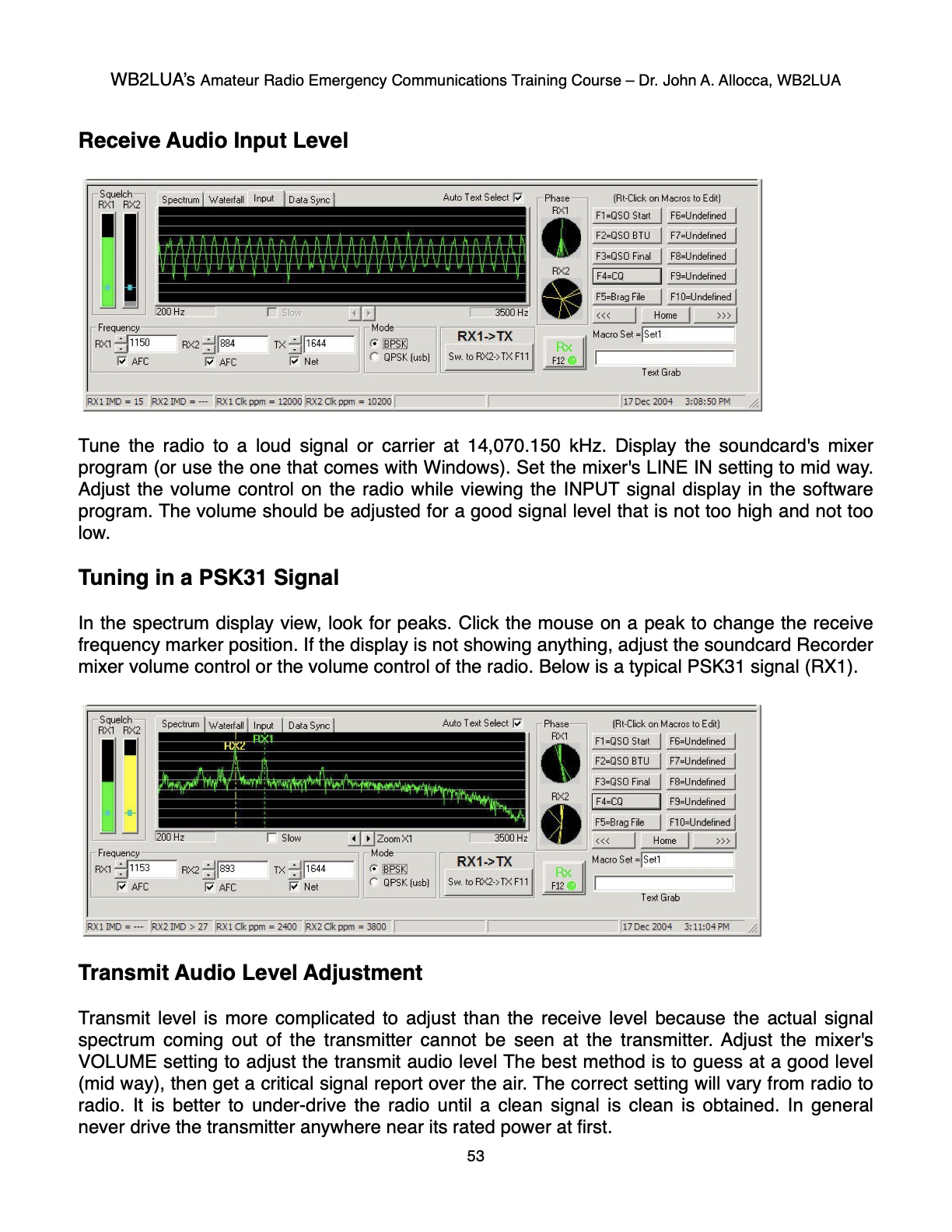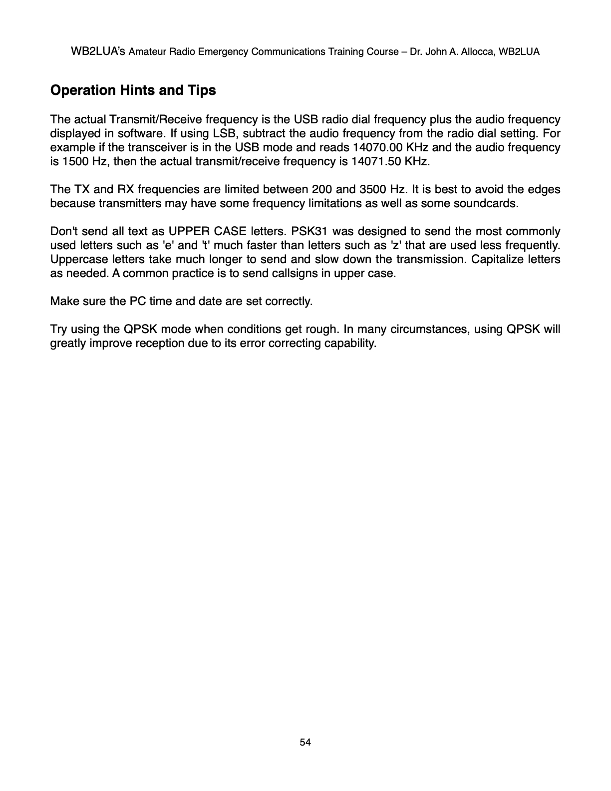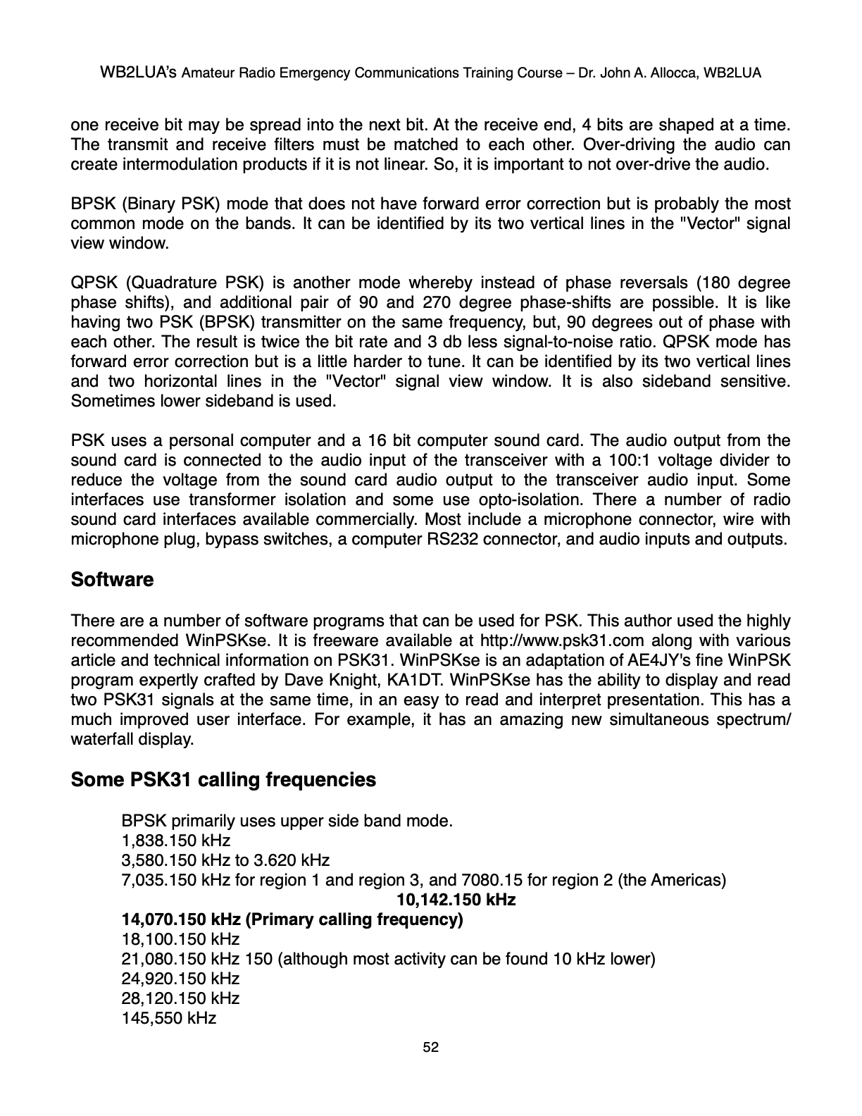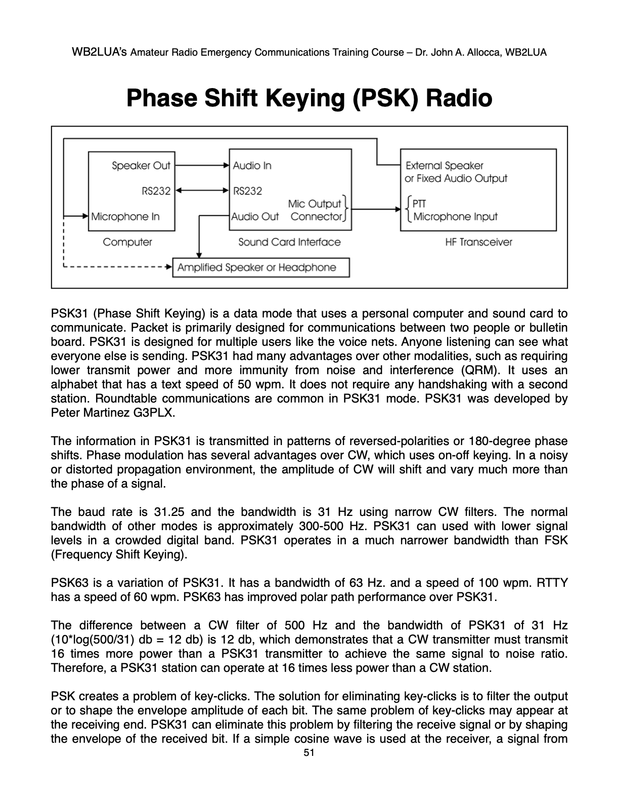 WB2LUA's Amateur Radio Emergency Communications Training Course Phase Shift Keying (PSK) Radio Dr. John A. Allocca Allocca Biotechnology, LLC 202 East Main Street, Huntington, NY 11743 (631) 757-3919 drallocca@icloud.com www.allocca.com Copyright 2025 - All Rights Reserved SCROLL DOWN TO VIEW NEXT SLIDE Please Do Not Copy Click Here to Return to Main Menu |