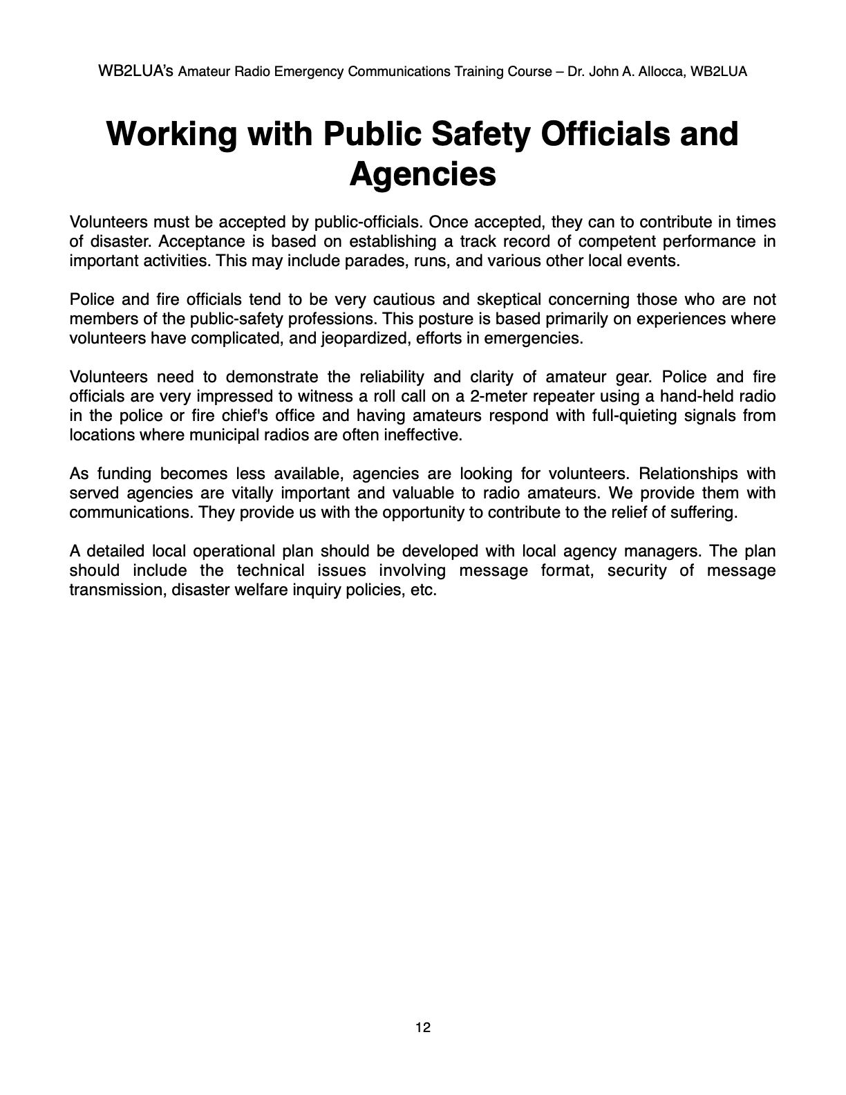 WB2LUA's Amateur Radio Emergency Communications Training Course Working with Public Safety Officials and Agencies Dr. John A. Allocca Allocca Biotechnology, LLC 202 East Main Street, Huntington, NY 11743 (631) 757-3919 drallocca@icloud.com www.allocca.com Copyright 2025 - All Rights Reserved SCROLL DOWN TO VIEW NEXT SLIDE Please Do Not Copy Click Here to Return to Main Menu |